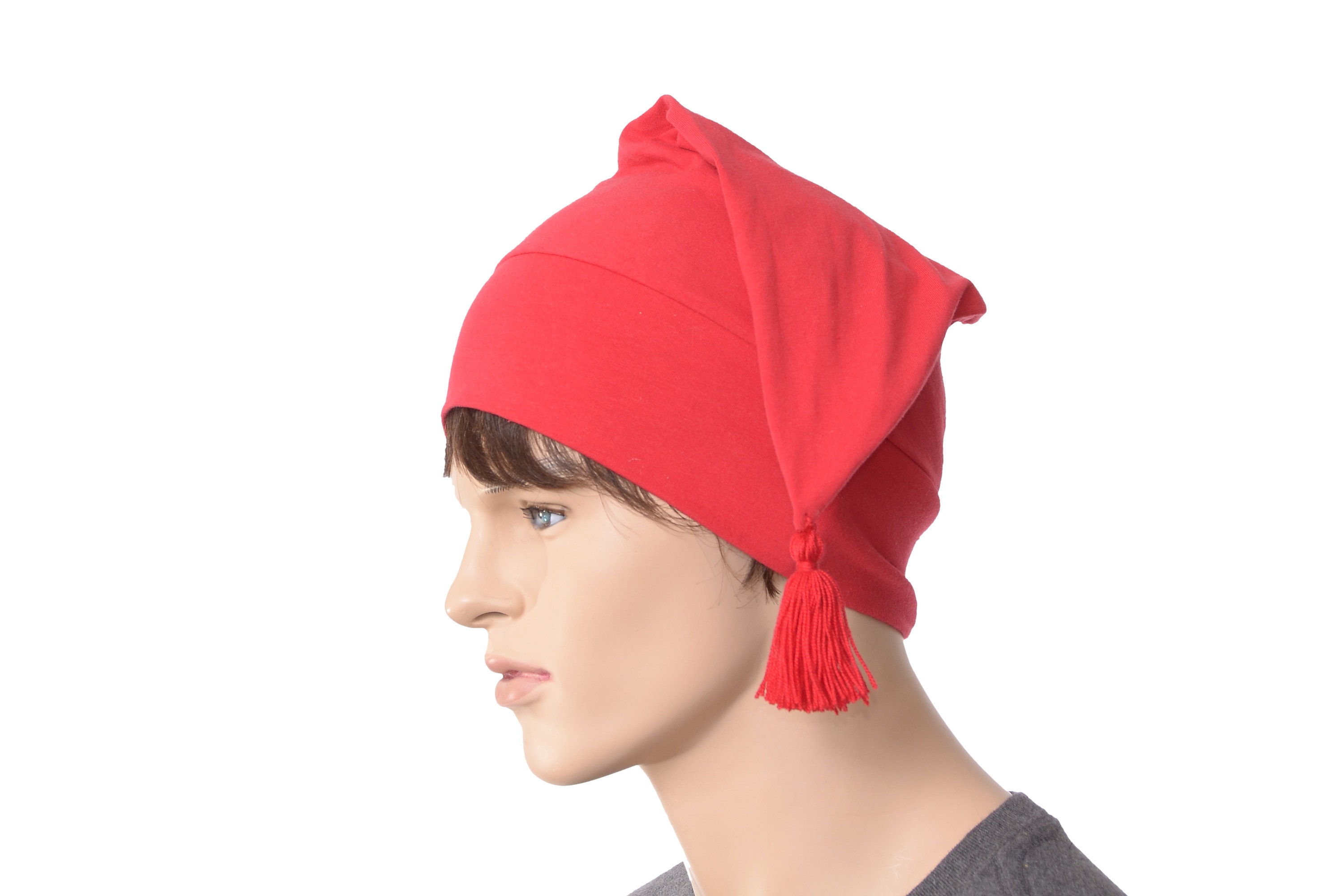 Hat made with the traditional pointed tip with tassel trim. Double thick stretchy headband.